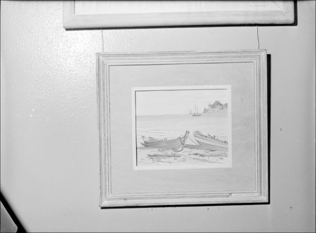 - Peinture de Gérard Perrault. Nous apercevons les toiles intitulées «Les Barques - Coin du Banc» (E6,S7,SS1,P56135), «Newport-Gaspésie» (E6,S7,SS1,P56137) et «Au pied du gros Morne» (E6,S7,SS1,P56140)