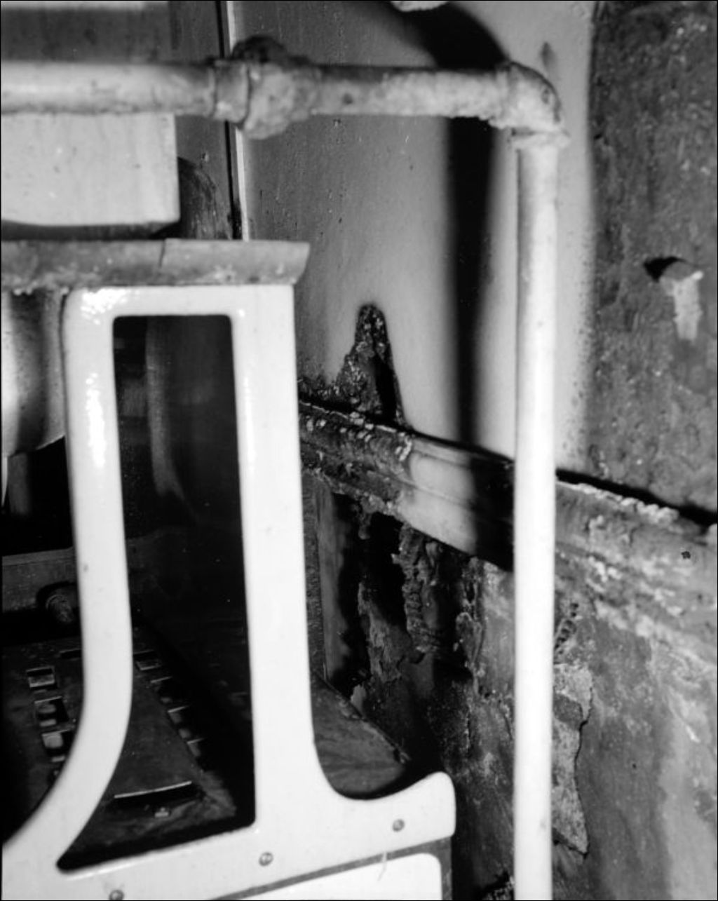 - Vues d'une résidence ravagée par un incendie. Nous apercevons le plancher (E6,S7,SS1,P56255) et le poêle de marque Robert (E6,S7,SS1,P56257 et E6,S7,Ss1,P56261). Nous apercevons une vue d'ensemble de la cuisine (E6,S7,SS1,P56258) et du corridor (E6,S7,SS1,P56262). Dossier créé pour Hydro-Québec, ministère des Ressources hydrauliques