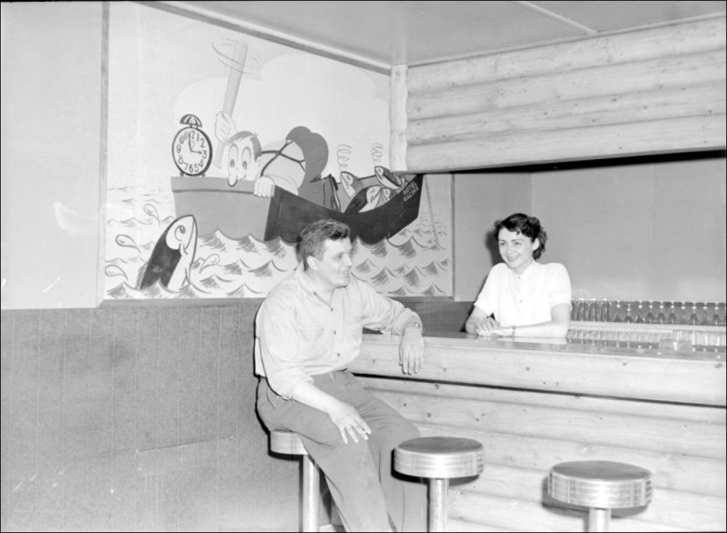 - Vues de poissons pris par les pêcheurs. Nous apercevons un pêcheur accompagné d'une jeune fille (E6,S7,SS1,P56422) et un groupe de pêcheurs qui tiennent leurs prises (E6,S7,SS1,P56423). Nous remarquons également un casse-croûte (E6,S7,SS1,P56421). Dossier produit pour le ministère de la Chasse et de la Pêche