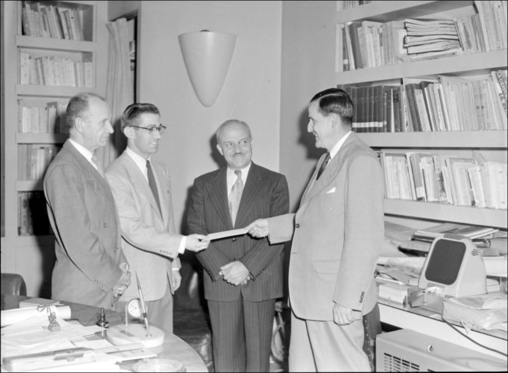 Il s'agit d'une réunion à l'École du meuble, rue Berri à Montréal. Dossier produit pour monsieur Gauvreau