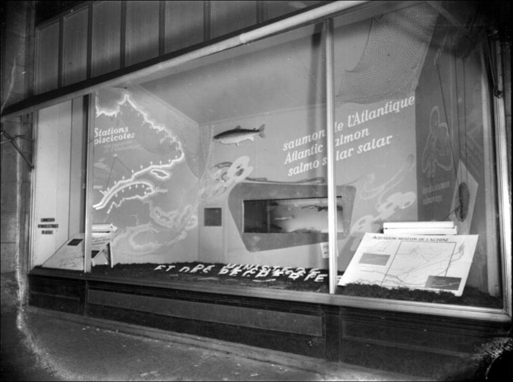Il s'agit d'un kiosque d'information sur le saumon de l'Atlantique. Dossier produit pour le ministère de la Chasse et de la Pêche