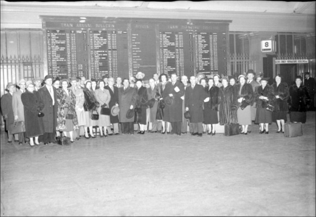 Il s'agit de personnes attendant le train (probablement à la gare Windsor de Montréal). Dossier commandé par M. Garceau