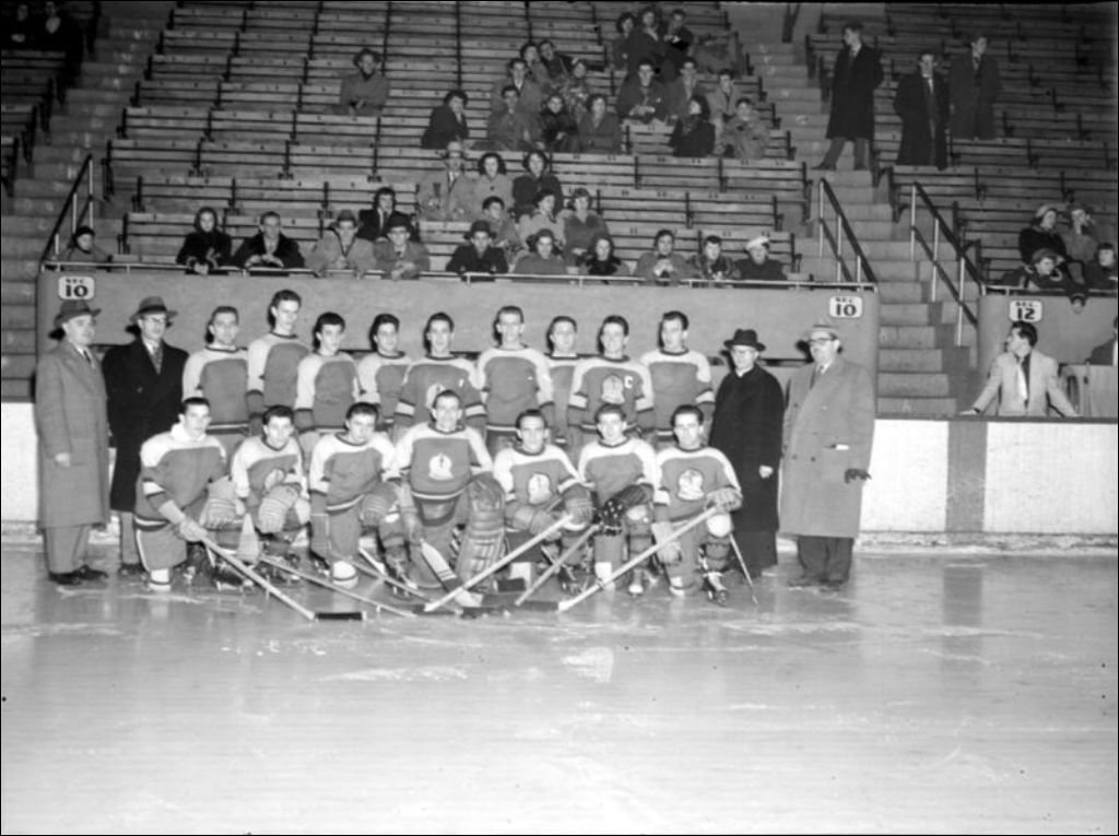 M. Lévesque. École centrale d'Arts et Métiers. Hockey, [195-], Archives nationales à Montréal, Fonds Ministère de la Culture et des Communications, (06M,E6,S7,SS1,D58101-58101), Photographe non identifié.