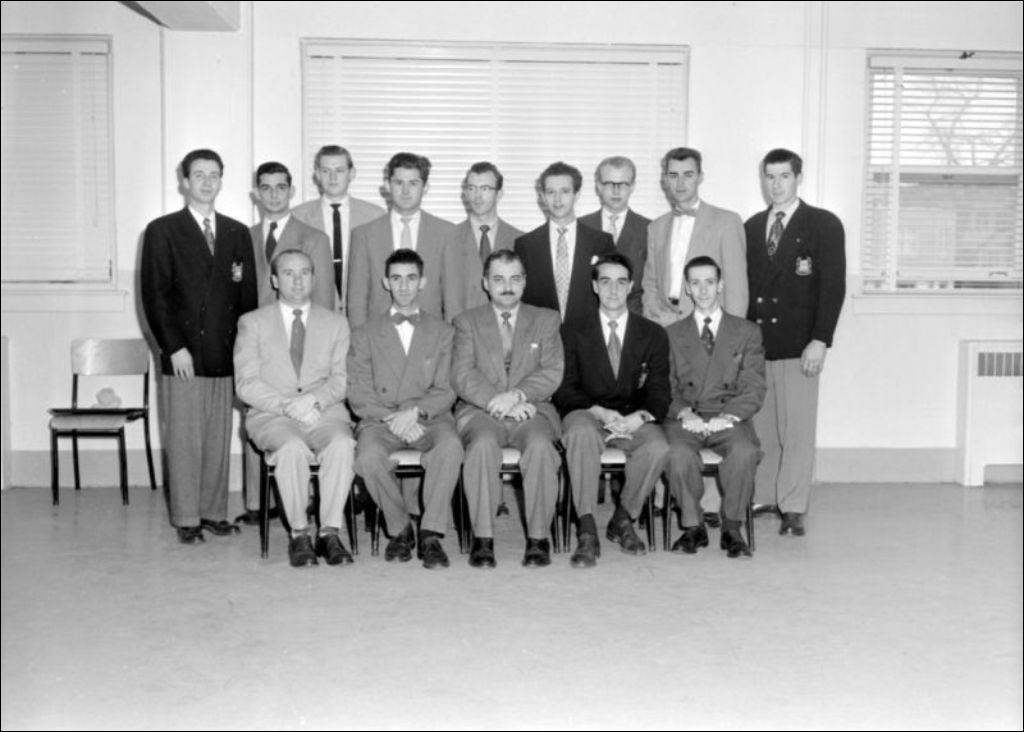 - Il s'agit d'hommes réunis au Palais du commerce, rue Berri à Montréal. Dossier produit pour Paul Boucher