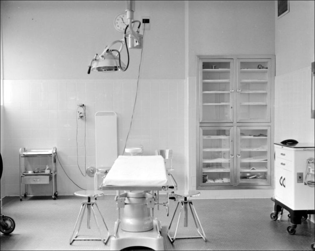 Institut Bruchési. Salle d'attente, chirurgie, auditorium, salle d'examen, 1961, Archives nationales à Montréal, Fonds Ministère de la Culture et des Communications, (06M,E6,S7,SS1,D610475-610479), Claude Gosselin.