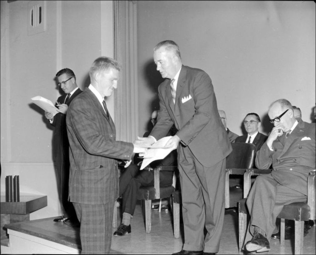 - Les diplômés reçoivent des attestations. Événement photographié pour P. E. Lévesque, directeur du ministère de la Jeunesse