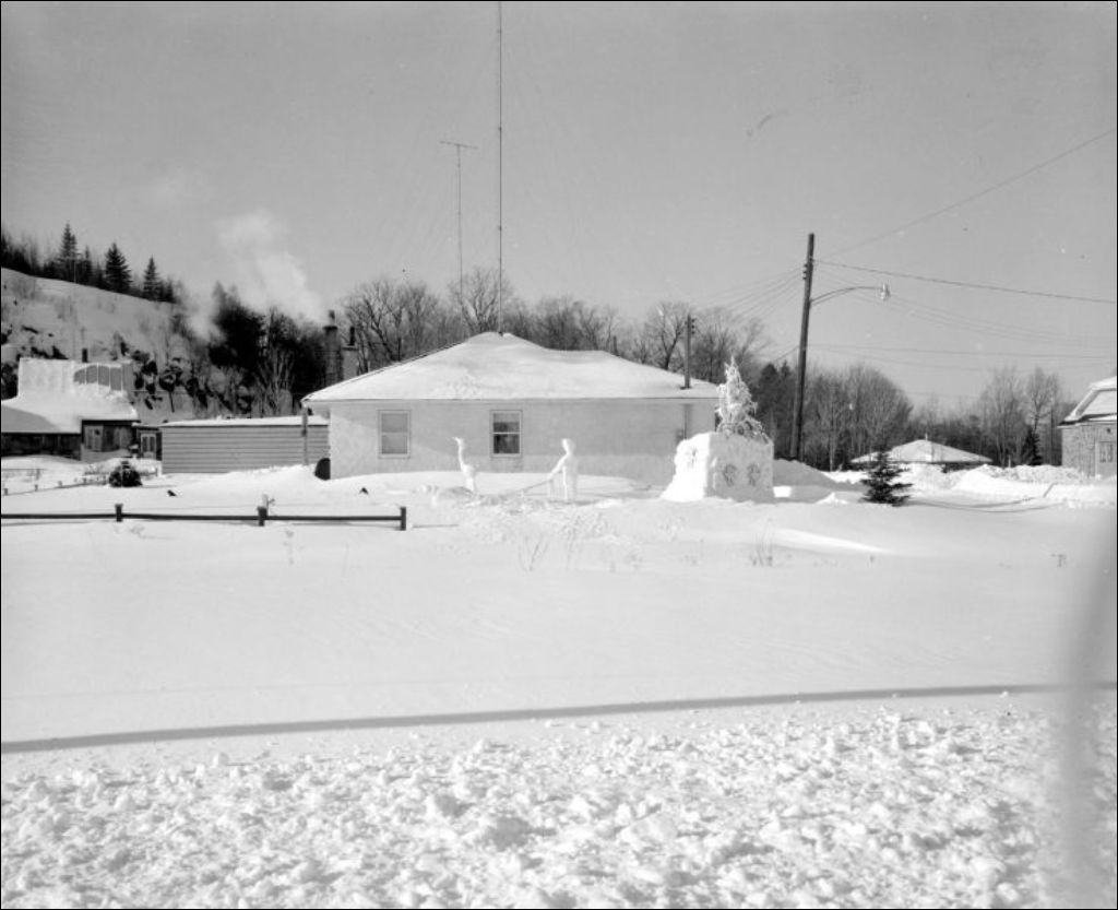 Carnaval et sculptures sur neige à Saint-Gabriel-de-Brandon. Classe en apprentissage. Scènes photographiées pour Sylva Dumont, directeur du ministère de la Jeunesse