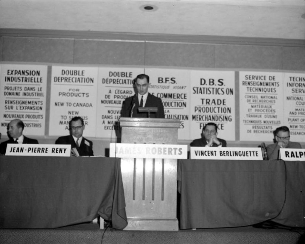 - Assemblée réunie à l'occasion de la Conférence d'expansion industrielle et commerciale. Événement photographié pour M. Dolley du ministère du Commerce et de l'Industrie