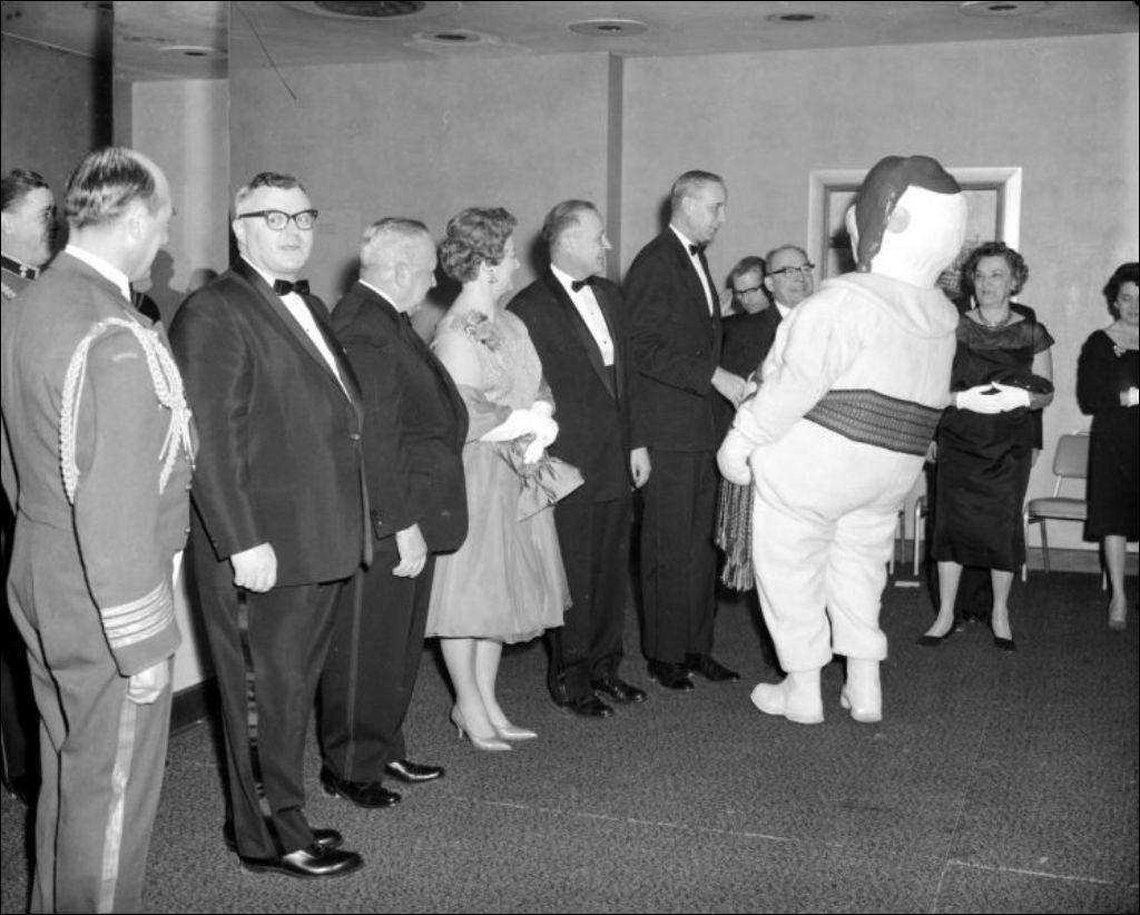 À l'hôtel Reine Elizabeth de Montréal, on assiste à une remise de diplômes. Une mascotte participe à l'événement