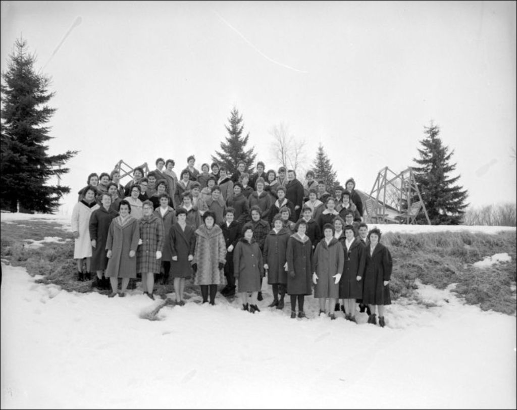 École ménagère. Groupe d'élèves de l'école 1962, 1962, Archives nationales à Montréal, Fonds Ministère de la Culture et des Communications, (06M,E6,S7,SS1,D620834-620834), Paul Girard.
