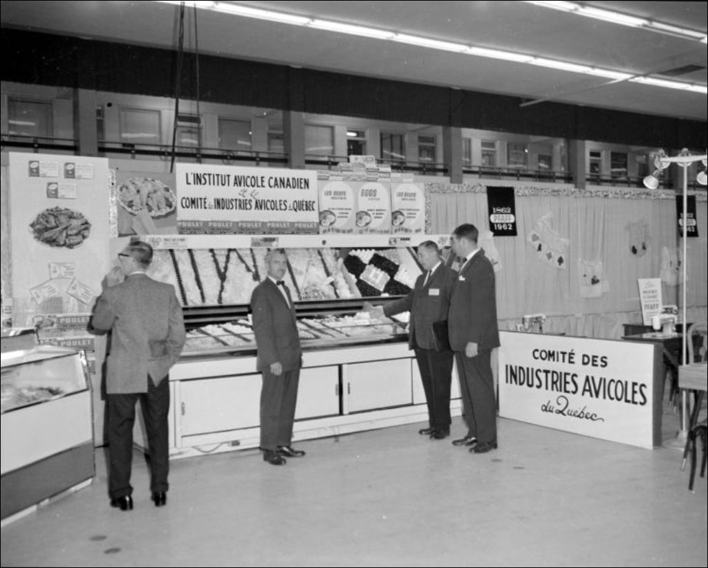 - Le Comité des industries avicoles du Québec, Lactantia, l'Association des producteurs de pommes de terre du Québec, les Producteurs de sucre d'érable de Québec et Hydro-Québec présentent un kiosque au Salon de l'alimentation. Événement photographié pour Omer Michaud du ministère de l'Agriculture