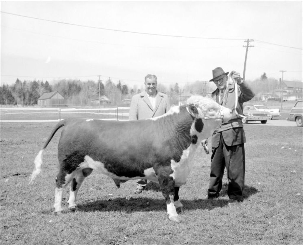 - M. MacMillan, secrétaire, de Cookshire, a commandé ces clichés de l'ouverture officielle de la vente de boeufs pur-sang (Hereford, Shorthorn et Aberdeen Angus), pour le compte du ministère de l'Agriculture