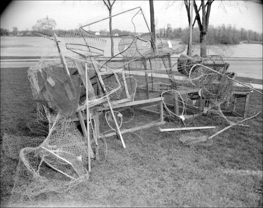 Des officiers du ministère du Tourisme, de la Chasse et de la Pêche ont saisi des agrès de pêche à l'île Perrot. J.-F. Bourque a commandé la photo pour le ministère de la Chasse et des Pêcheries