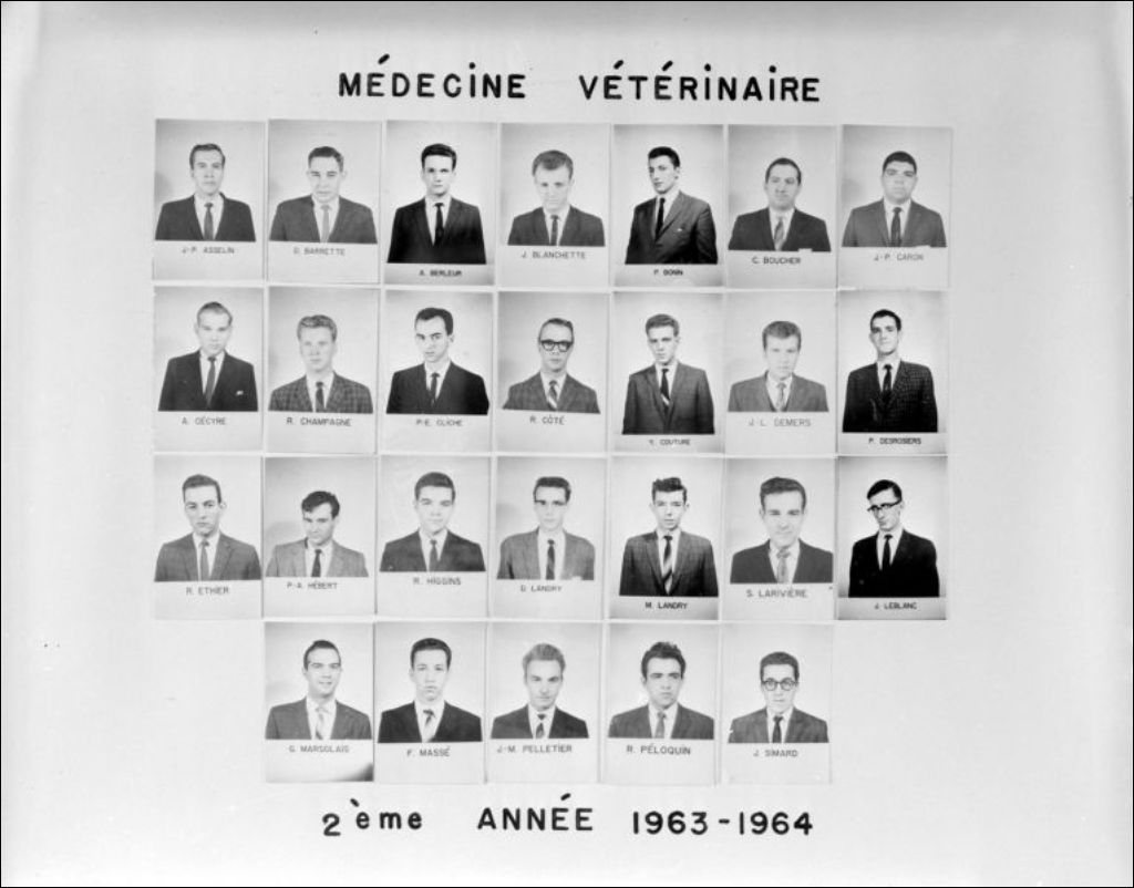 - Le ministère de l'Agriculture a acquis, à la demande du Dr. J.-G. Lafortune, les photos des élèves de 2e, 3e et 4e de l'année scolaire 1963-1964 à l'École de médecine vétérinaire de Saint-Hyacinthe
