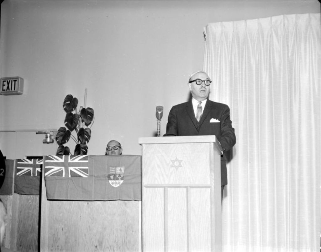 Le ministre de la Santé, Alphonse Couturier est en compagnie de Jean-Noël Lavoie et de représentants de la communauté juive, à l'occasion de l'inauguration de travaux de construction à Chomedey (Laval). Charles-Marie Boissonnault a commandé ces photos
