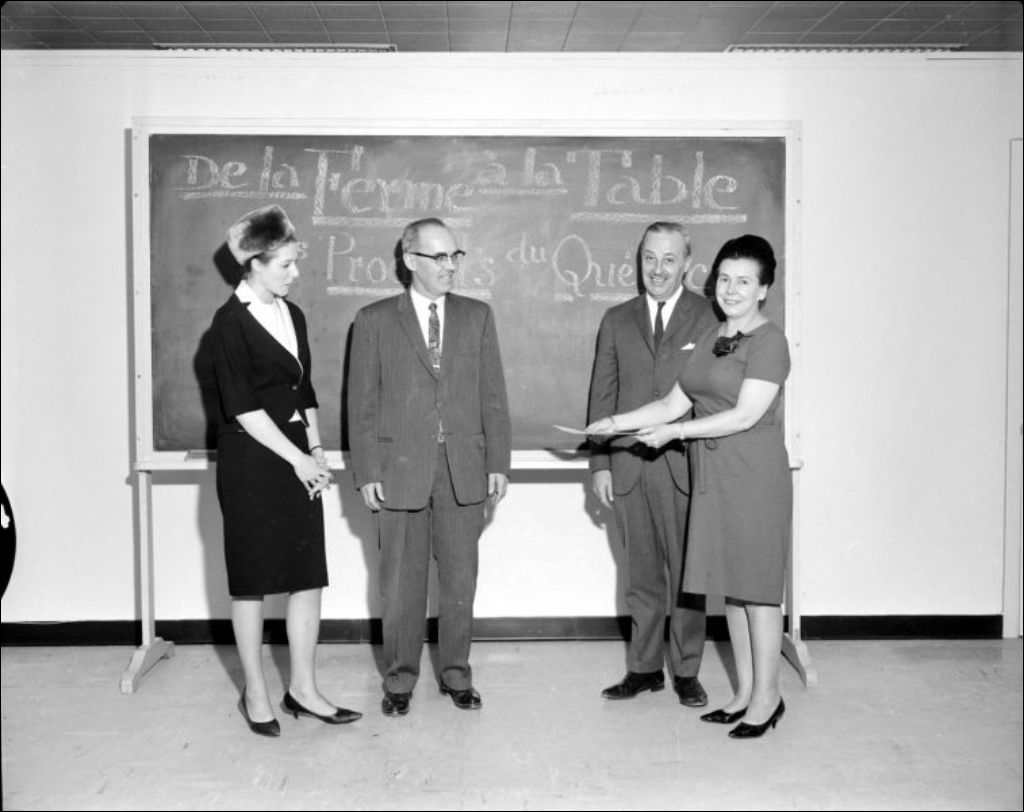Images soulignant le thème du Salon national de l'agriculture 1963 : «De la ferme à la table - les produits du Québec». Paul Boucher a commandé ces photos de groupes d'agronomes pour le ministère de l'Agriculture