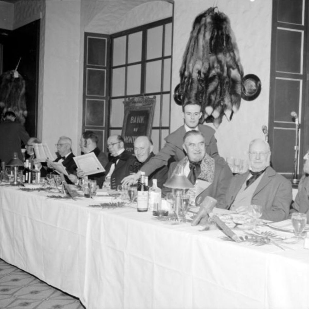 - On aperçoit, sur ces illustrations, des invités costumés à l'époque des coureurs des bois, l'arrivée du dessert lors du banquet et le cortège précédant l'arrivée du plat de résistance : le bifteck de bison. L'événement s'est déroulé à l'hôtel Reine Elizabeth à Montréal. Ces images ont été prises à la demande de J.-A. Tremblay pour le ministère du Tourisme de la Chasse et de la Pêche