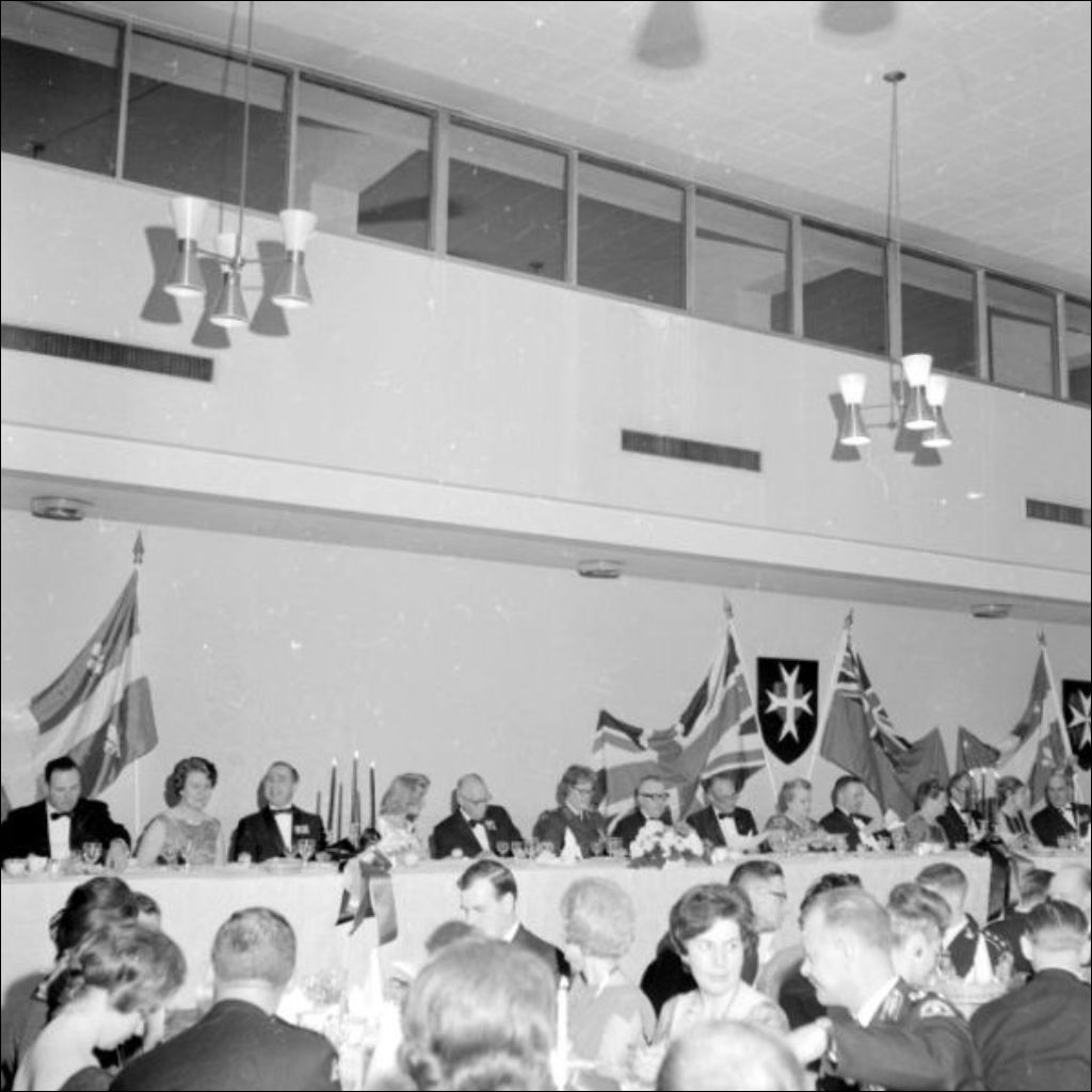 - Les images donnent un aperçu du banquet et de la table d'honneur. Ces clichés ont été pris à l'Institut de réhabilitation de Montréal, rue Darlington. Images demandées pour Charles-Marie Boissonnault, ministère de la Santé