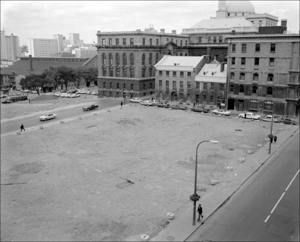 Démolition et emplacement du nouveau palais de Justice à Montréal, 1964, Archives nationales à Montréal, Fonds Ministère de la Culture et des Communications, (06M,E6,S7,SS1,D641389-641391), Gabor Szilasi.