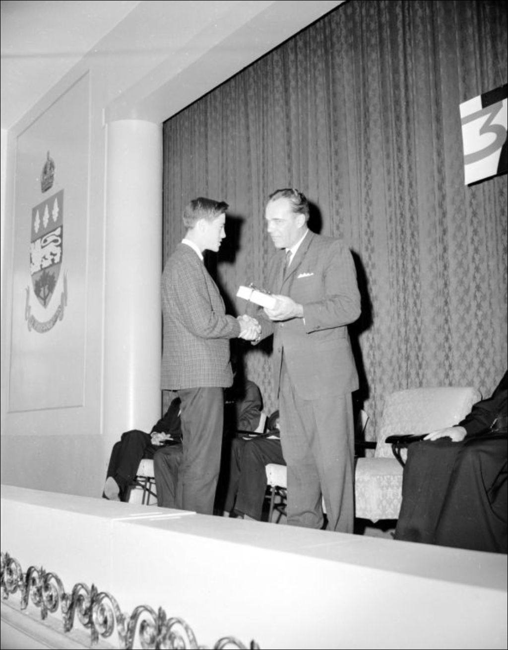 - Le directeur, le frère supérieur et le frère directeur remettent des prix aux finissants. Ces photos ont été prises à l'intention de L. Saint-Arneault pour le ministère de l'Éducation