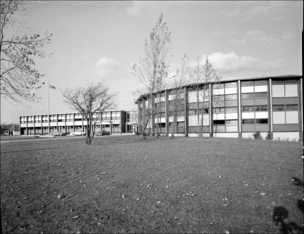 Lindsay Place High School. Pointe-Claire, 1964, Archives nationales à Montréal, Fonds Ministère de la Culture et des Communications, (06M,E6,S7,SS1,D642583-642594), Gabor Szilasi.