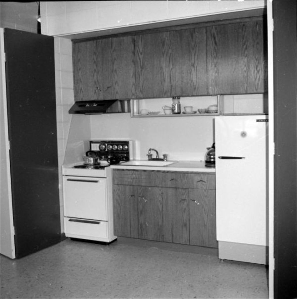 - On voit des bureaux de professeurs et d'élèves, une cuisinière et des chaises de repos. Ces images ont été faites à la demande de A. Michaud du ministère de l'Éducation