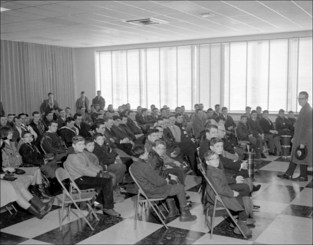 Réunion au Marché central-métropolitain, 1965, Archives nationales à Montréal, Fonds Ministère de la Culture et des Communications, (06M,E6,S7,SS1,D650523-650523), Claude Gosselin.