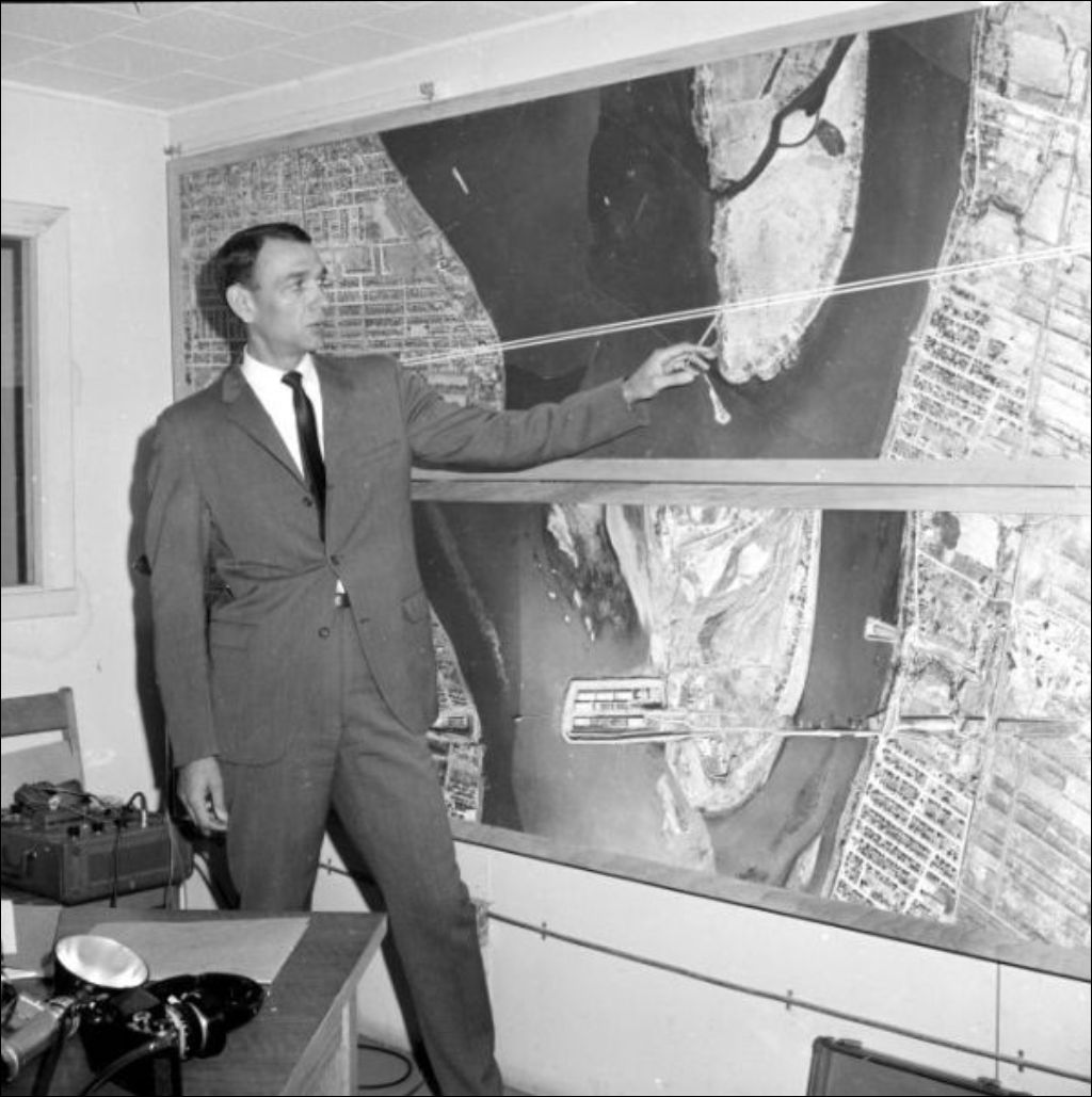 Travaux d'excavation à l'île Charron pour le pont-tunnel LaFontaine, 1965, Archives nationales à Montréal, Fonds Ministère de la Culture et des Communications, (06M,E6,S7,SS1,D650827-650830), Adrien Hubert.