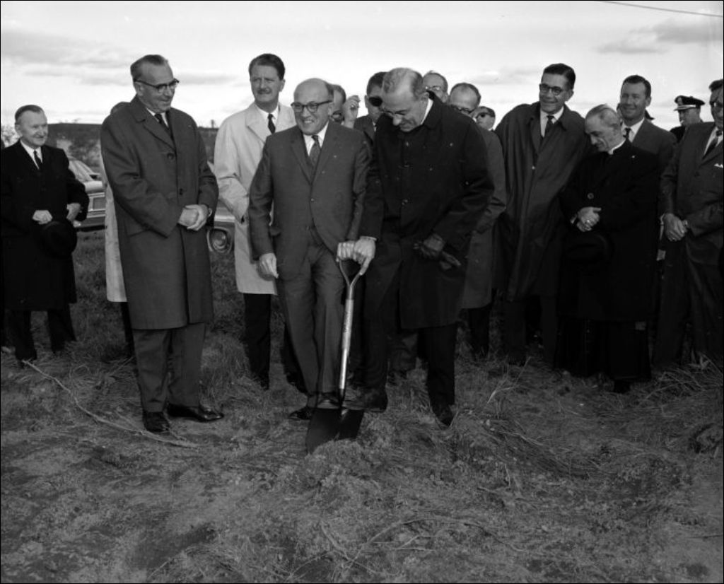 Première levée de terre pour la nouvelle prison de Saint-Hyacinthe, 1965, Archives nationales à Montréal, Fonds Ministère de la Culture et des Communications, (06M,E6,S7,SS1,D651775-651775), Claude Gosselin.