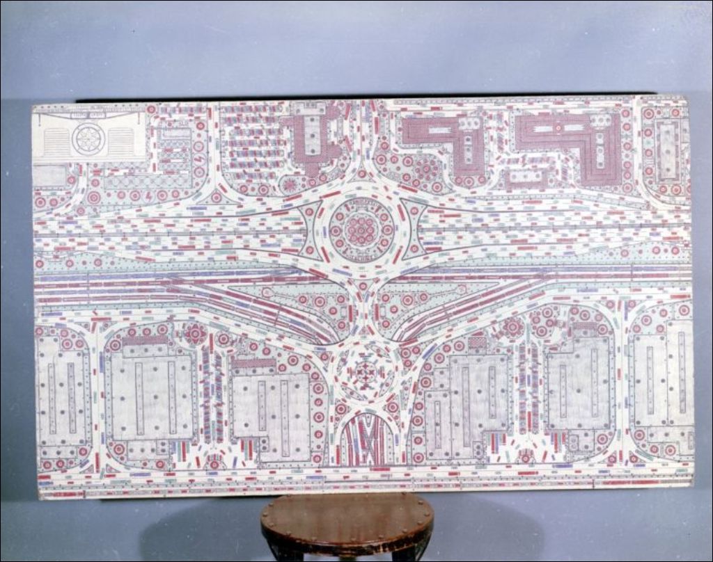 Ces images représentent probablement une conception de plan de circulation à Lachine. Ce dessin a été réalisé par Lauriat Martel. Ces images ont été faites à la demande de Jacques Hébert pour le ministère de la Voirie