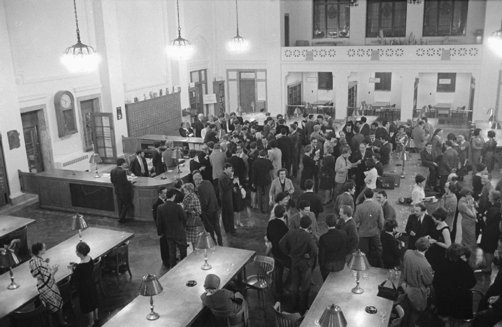 Lancement de la revue «Culture vivante». Salle de lecture de la Bibliothèque Saint-Sulpice, rue Saint-Denis à Montréal