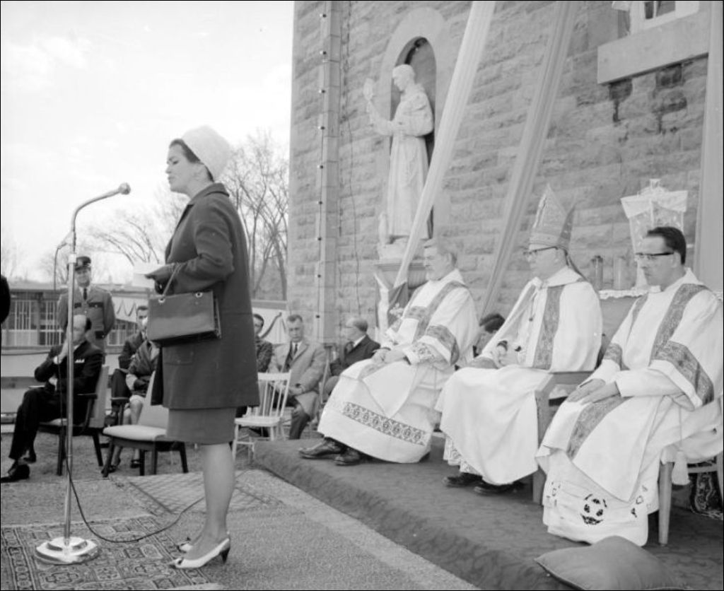 - On voit la Chapelle-de-la-Réparation ainsi qu'un groupe d'invités religieux et laïcs participant à la cérémonie de Pointe-aux-Trembles (Montréal). Ces photos ont été faites à la demande de J.-P. Kingsley pour le ministère des Transports et des Communications