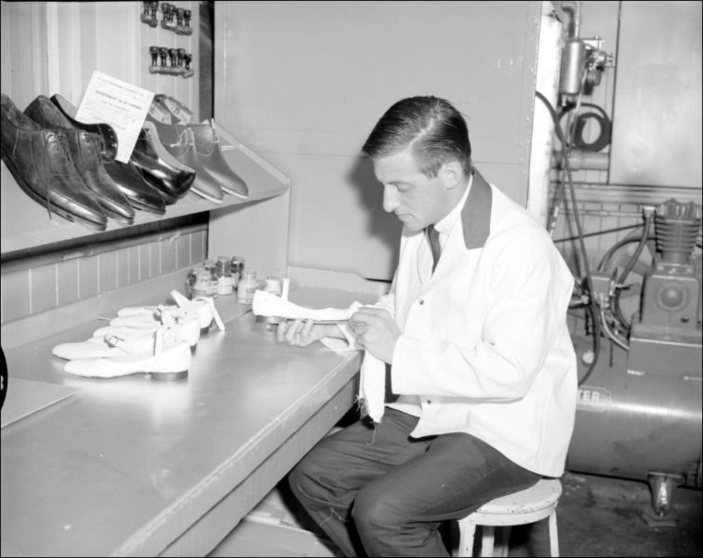Illustration d'un cours au Centre d'apprentissage de la chaussure, 1966, Archives nationales à Montréal, Fonds Ministère de la Culture et des Communications, (06M,E6,S7,SS1,D661742-661742), Claude Gosselin.