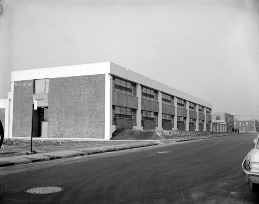 Bâtiment du Centre d'apprentissage de la chaussure, 1966, Archives nationales à Montréal, Fonds Ministère de la Culture et des Communications, (06M,E6,S7,SS1,D662305-662305), Claude Gosselin.