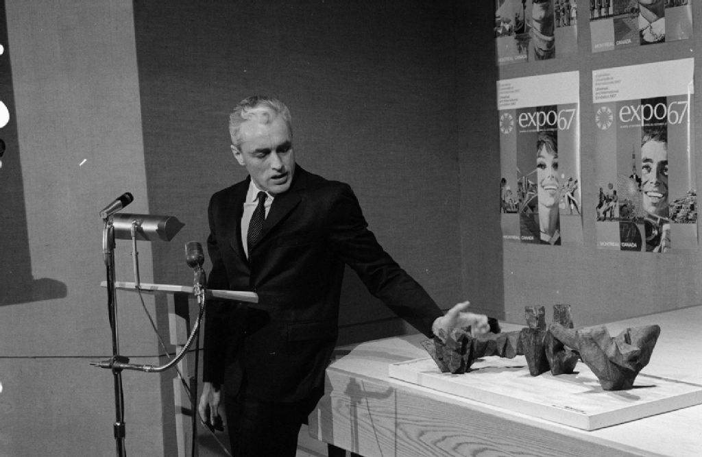 Conférence de presse. Cité du Havre. Montréal., 1967, Archives nationales à Montréal, Fonds Ministère de la Culture et des Communications, (06M,E6,S7,SS1,D670167-670167), Gabor Szilasi.