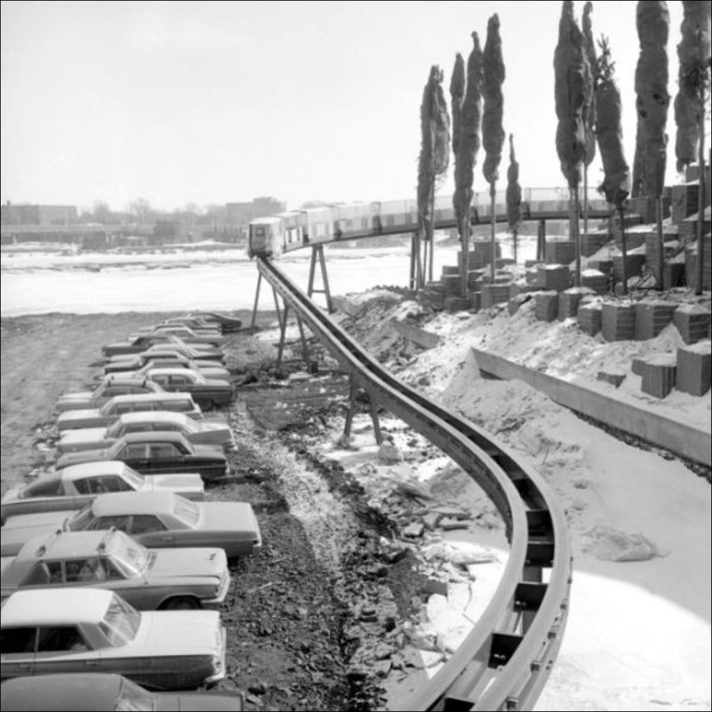 Pierre Perrault du ministère de l'Industrie et du Commerce a demandé ces clichés de l'avancement des travaux au pavillon du Québec de l'Exposition universelle de 1967 à Montréal