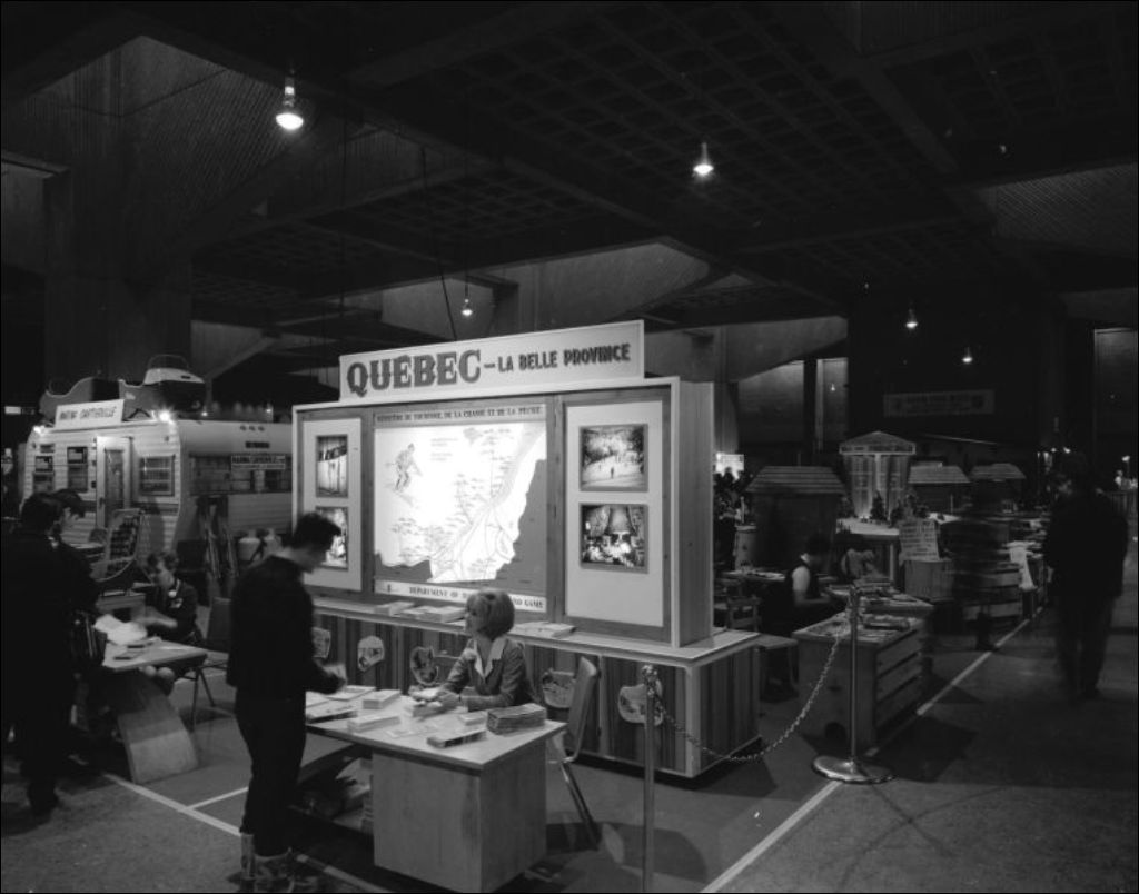 Marc Hardy du ministère du Tourisme, de la Chasse et de la Pêche a commandé ces photos de kiosques de publicité touristique sur le Québec. L'événement s'est déroulé à la Place Bonaventure à Montréal