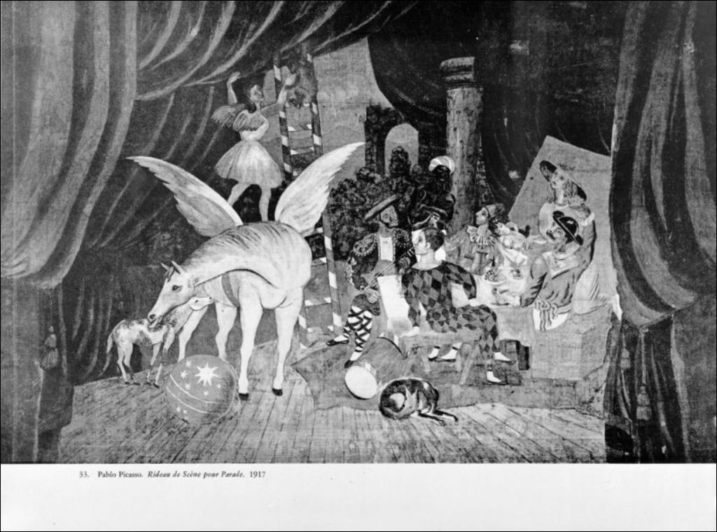 Tableau de Pablo Picasso «Rideau de Scène pour Parade»., 1968, Archives nationales à Montréal, Fonds Ministère de la Culture et des Communications, (06M,E6,S7,SS1,D682226-682226), Photographe non identifié.
