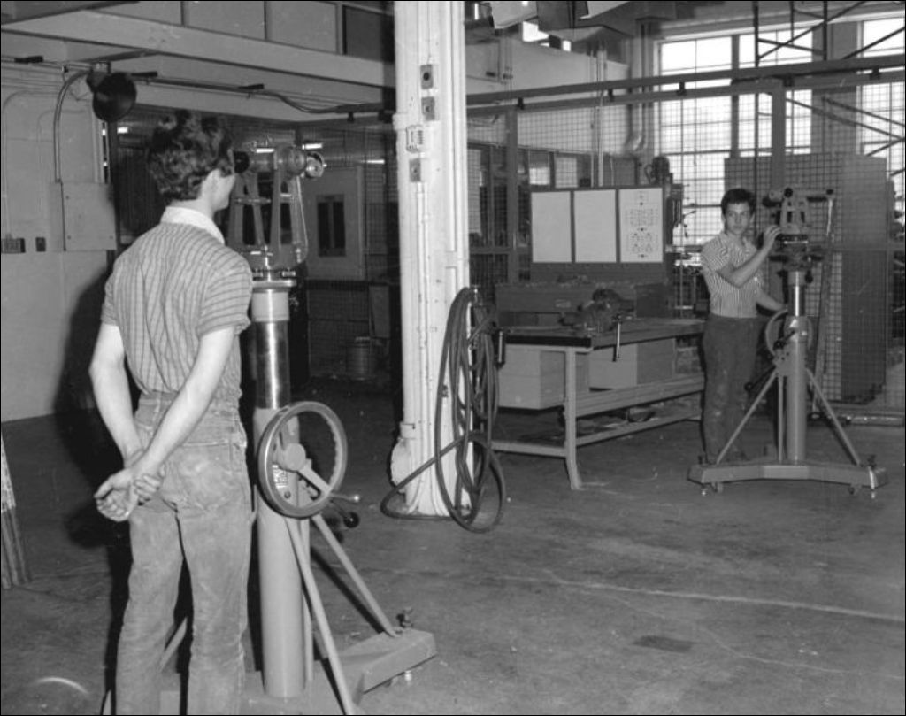 - Des salles de cours, des ateliers et des outils servent au travail en mécanique industrielle. Clichés commandés par G. Fleury du ministère du Travail, Service d'aide à l'apprentissage