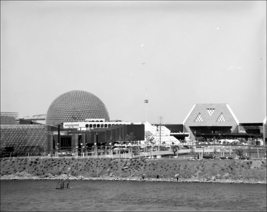Pavillons à Terre des hommes, 1969, Archives nationales à Montréal, Fonds Ministère de la Culture et des Communications, (06M,E6,S7,SS1,D691232-691233A), Gabor Szilasi.