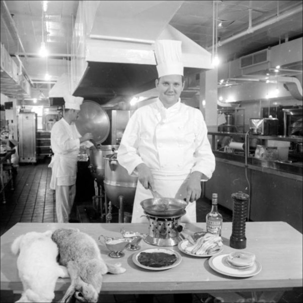 - Spécialités culinaires des chefs de dix hôtels situés dans les Laurentides. Nous apercevons les chefs à la cuisine puis présentant les plats réalisés et assistant à la dégustation. Clichés commandés par H. P. Garceau du ministère du Tourisme, de la Chasse et de la Pêche, Service d'hôtellerie
