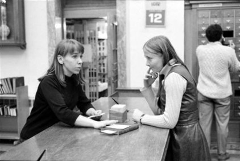 - Nous voyons le comptoir du prêt, la salle de recherche et le système de recherche Dewey. Clichés commandés par Claude Haeffely du ministère des Affaires culturelles