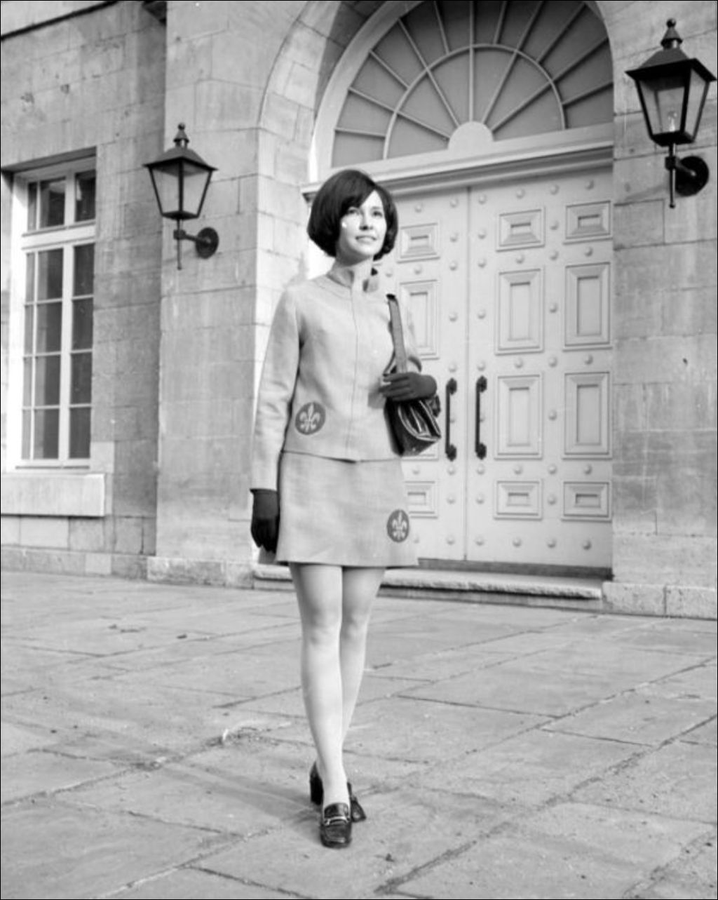 - Les mannequins réunies dans le Vieux-Montréal présentent les costumes ornés d'un écusson en forme de fleur de lys. Clichés commandés par P. P. Beauchamp du ministère du Conseil exécutif, Office de l'information