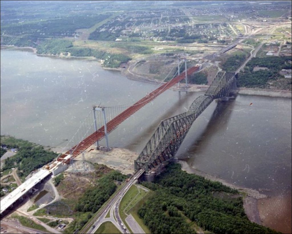 Ancien et nouveau pont de Québec. Québec, 1970, Archives nationales à Montréal, Fonds Ministère de la Culture et des Communications, (06M,E6,S7,SS1,D700485-1-700485-1), Gabor Szilasi.