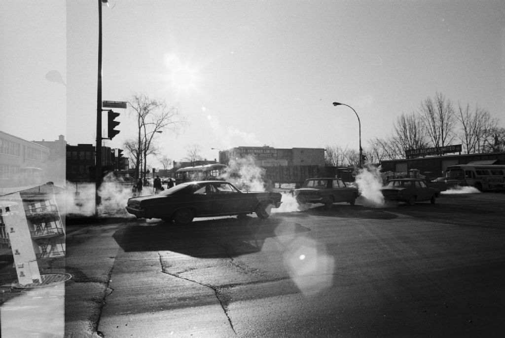 - Terminus d'autobus et station de métro Henri-Bourrassa. On remarque les automobiles circulant sur le boulevard Henri-Bourassa. Clichés commandés par Paule Binette du ministère des Communications, Service de l'information et publicité