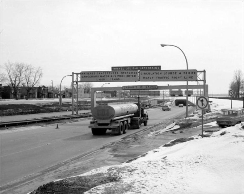 Approches du pont-tunnel Louis-Hippolyte-LaFontaine, 1970, Archives nationales à Montréal, Fonds Ministère de la Culture et des Communications, (06M,E6,S7,SS1,D700696-700696), Henri Rémillard.
