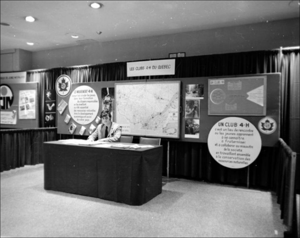 Kiosque des clubs 4-H du Québec à l'hôtel Reine Elizabeth. Montréal, 1970, Archives nationales à Montréal, Fonds Ministère de la Culture et des Communications, (06M,E6,S7,SS1,D700917-700917), Gilles Langevin.