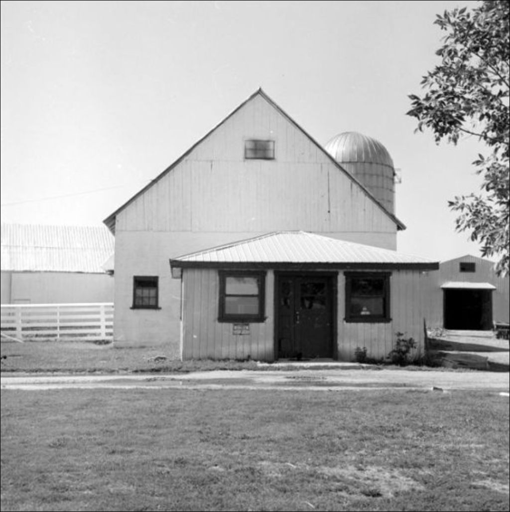 - On voit les bâtiments de la ferme, la famille réunie devant la maison, un troupeau de vaches de même que Édouard Jodoin au volant de son tracteur