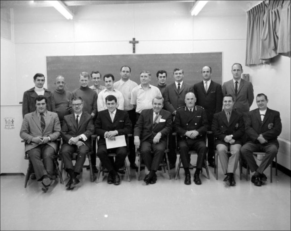 Prévention des incendies. Classe de pompiers. Poste de pompiers. Boulevard Lasalle. Verdun, 1970, Archives nationales à Montréal, Fonds Ministère de la Culture et des Communications, (06M,E6,S7,SS1,D703119-703119), Gilles Langevin.
