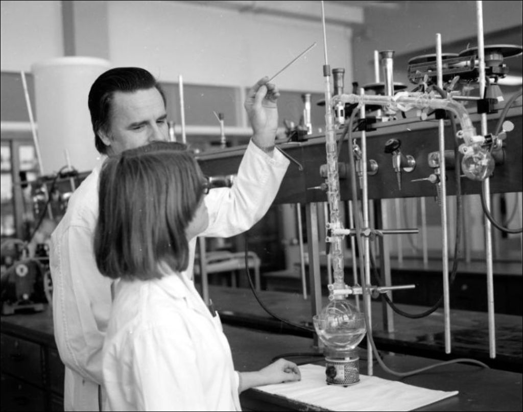 - Ces images montrent les élèves dans un laboratoire de chimie. Clichés réalisés pour Louis-Marie Tremblay du ministère de l'Éducation